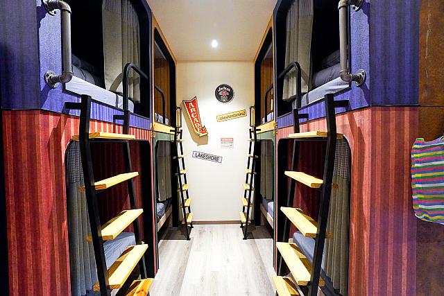 1部屋に6~8台のカプセル式の2段ベッドを設置したドミトリータイプで、プライベートを保ちながら格安で快適に宿泊することができます。