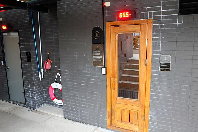 屋外には、20mはありそうなインフィニティプール(常温)と2種類のジャグジー、ドライサウナとスチームサウナが設置されています。屋内には各種マシンを備えたジムも。
