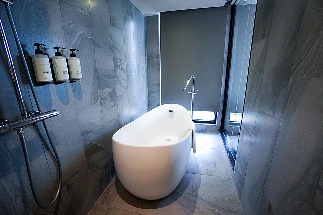 浴室もゆったり広々!バストイレがセパレートになっていたり、シャワースペースが洗い場風になっていたり、日本っぽい使いやすさがうれしいですね。なんと浴衣まで!