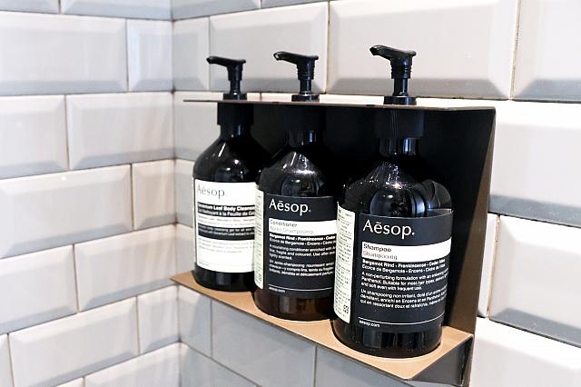 バスルームもゆったり!オープン式の洗面所の前にシャワールームがあり、入口ドア付近にはトイレと完全分離なのがうれしいですね。バスタブがないのは残念ですが……。シャンプー類はAēsopのものでした。いい香り~♡ |