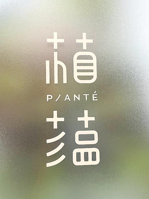 すりガラスに描かれた「植蘊」のとっても愛らしいロゴ。「植蘊 Planté」は、ヘルシー志向のドリンクを専門としているドリンクスタンドで、台湾産茶葉と台湾フルーツに高品質タンパク質+食物繊維、植物由来の栄養成分(ファイトケミカル)を組み合わせています