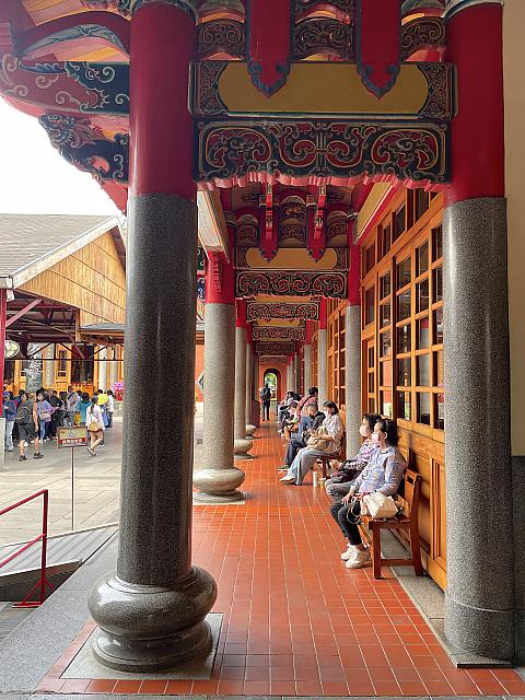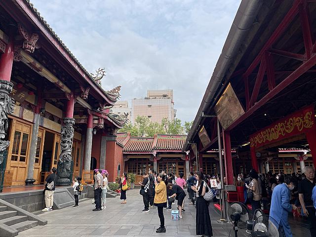 境内のベンチには多くの人が腰を下ろしています。「收驚」の順番を待っている人もいれば、休憩している人もいるようです。